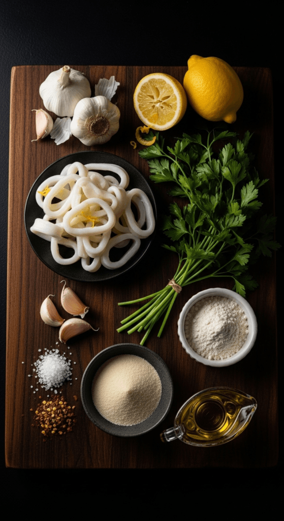 🛒 Ingredients You’ll Need for Lemon Garlic Calamari